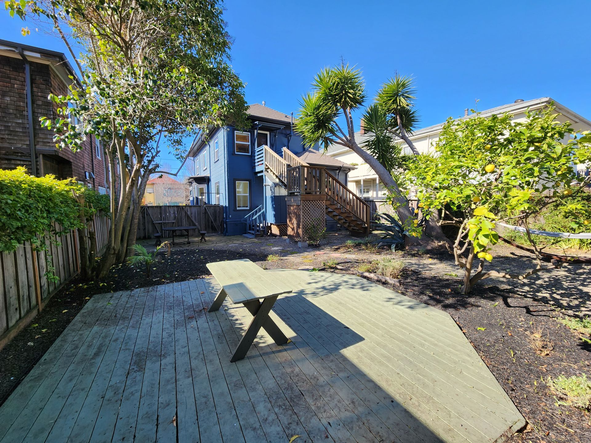 2 bedroom duplex, great for young professionals and students (maximum occupancy: 4). Featuring fully equipped kitchen, remodeled bathroom, large bedrooms, ample natural light, generous storage and hardwood floors throughout. Large shared backyard. Furnished with sofa, dining set, beds, desk. The property is minutes from Ashby BART station, bikeable distance to UC Berkeley campus. Nearby amenities include Downtown Berkeley, BART, public transportation, Safeway, Walgreens, 2 Farmers' Markets, grocery stores, restaurants, coffee shops and much more.